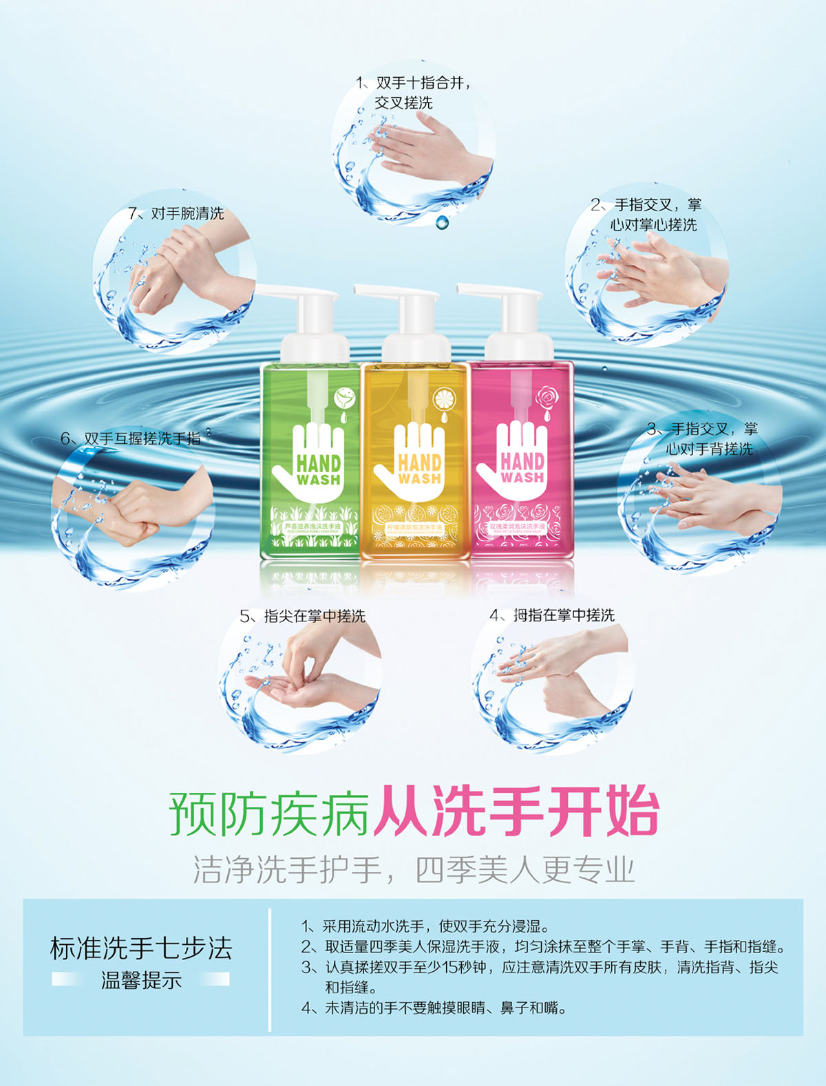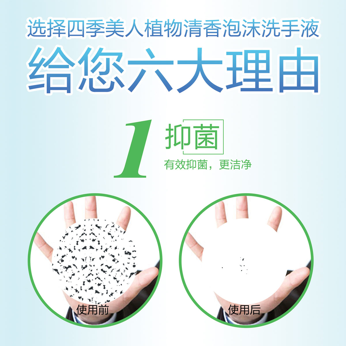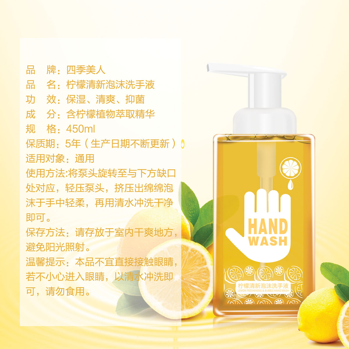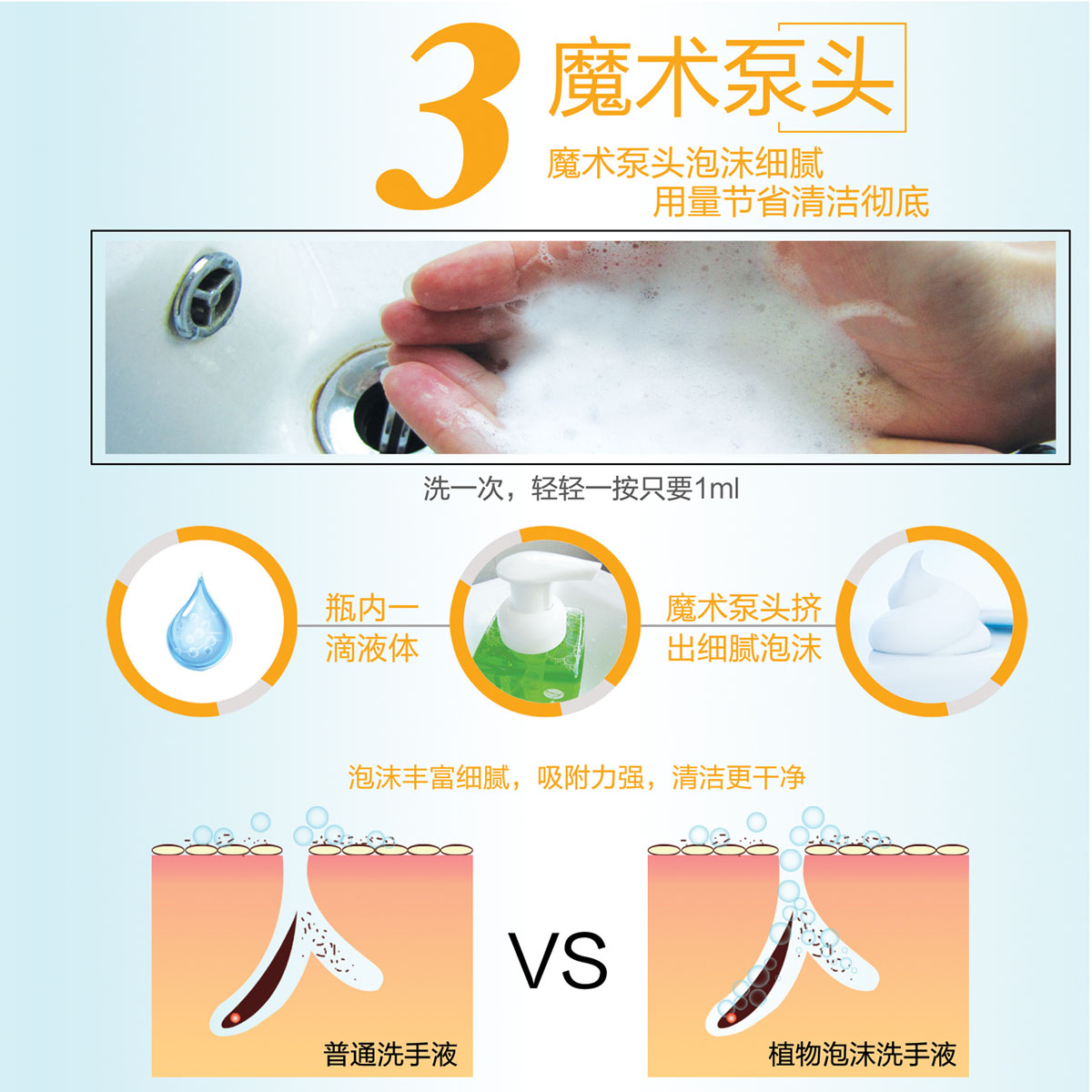 *温和洁净配方,温和去除手部污垢及油脂,令双手清新爽洁; *蕴含玫瑰提取精华,在清洁双手的同时有效滋养及润滑双手,泡沫丰富易冲洗,温馨浪漫的玫瑰花香有助去除手上的异味; *选用泡沫型的卫生泵头,按出丰富细密的泡沫,好玩有趣,易冲洗,使用更方便,适合全家每天使用。