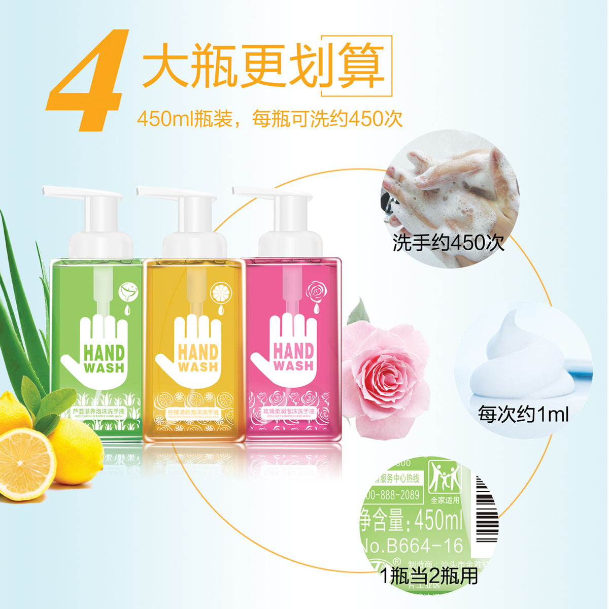 【450泡沫洗手液】玫瑰柔润泡沫洗手液
