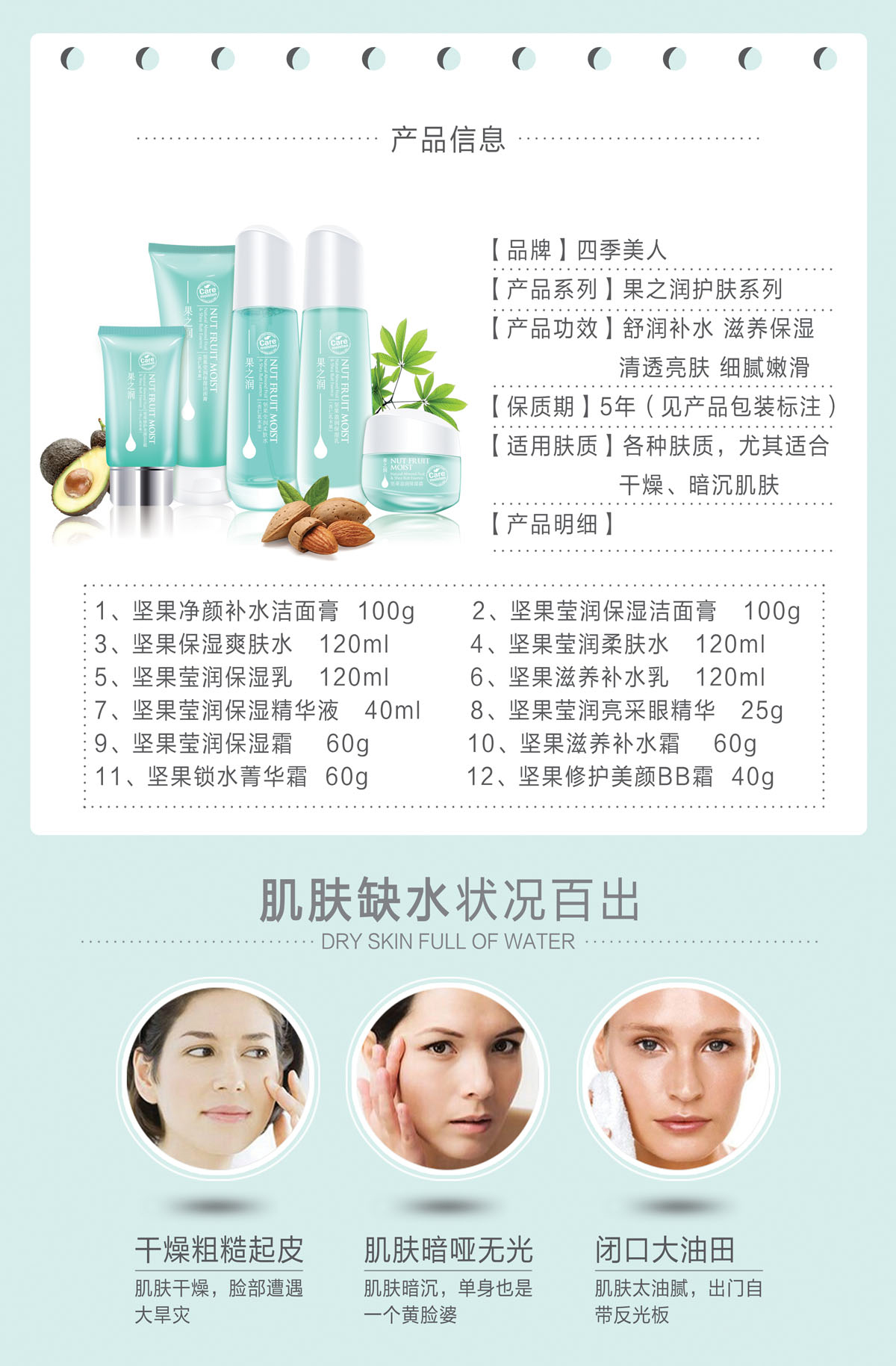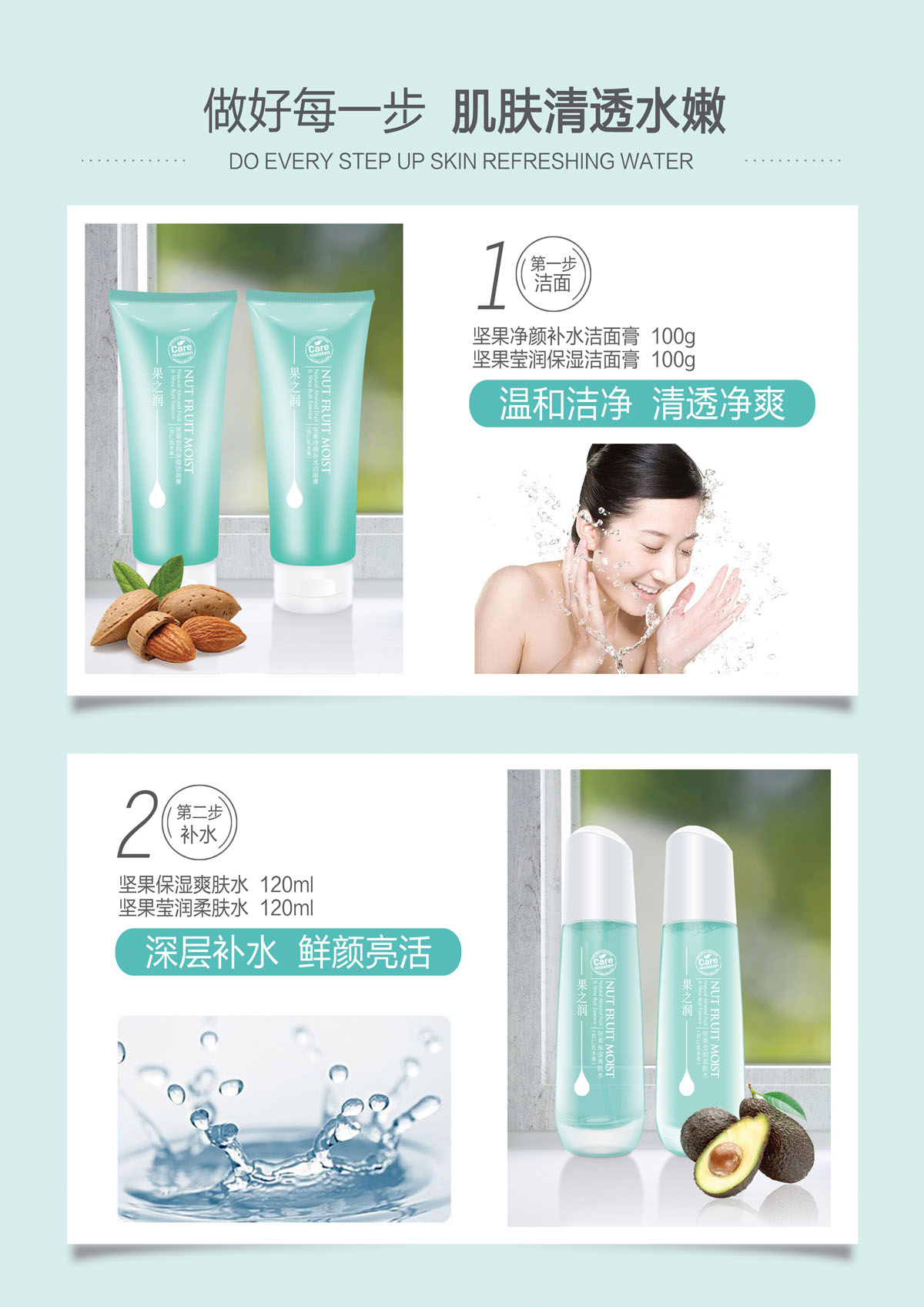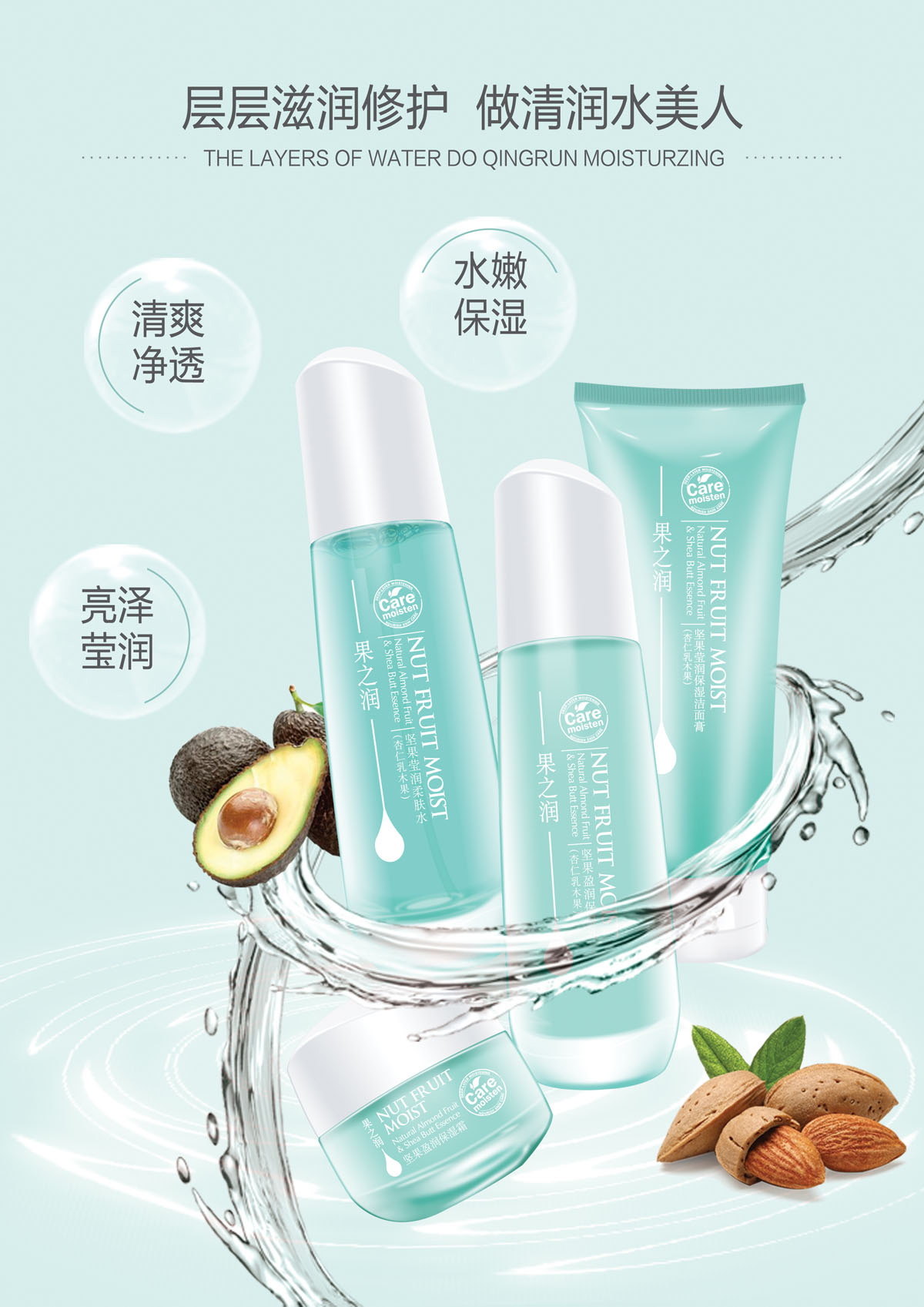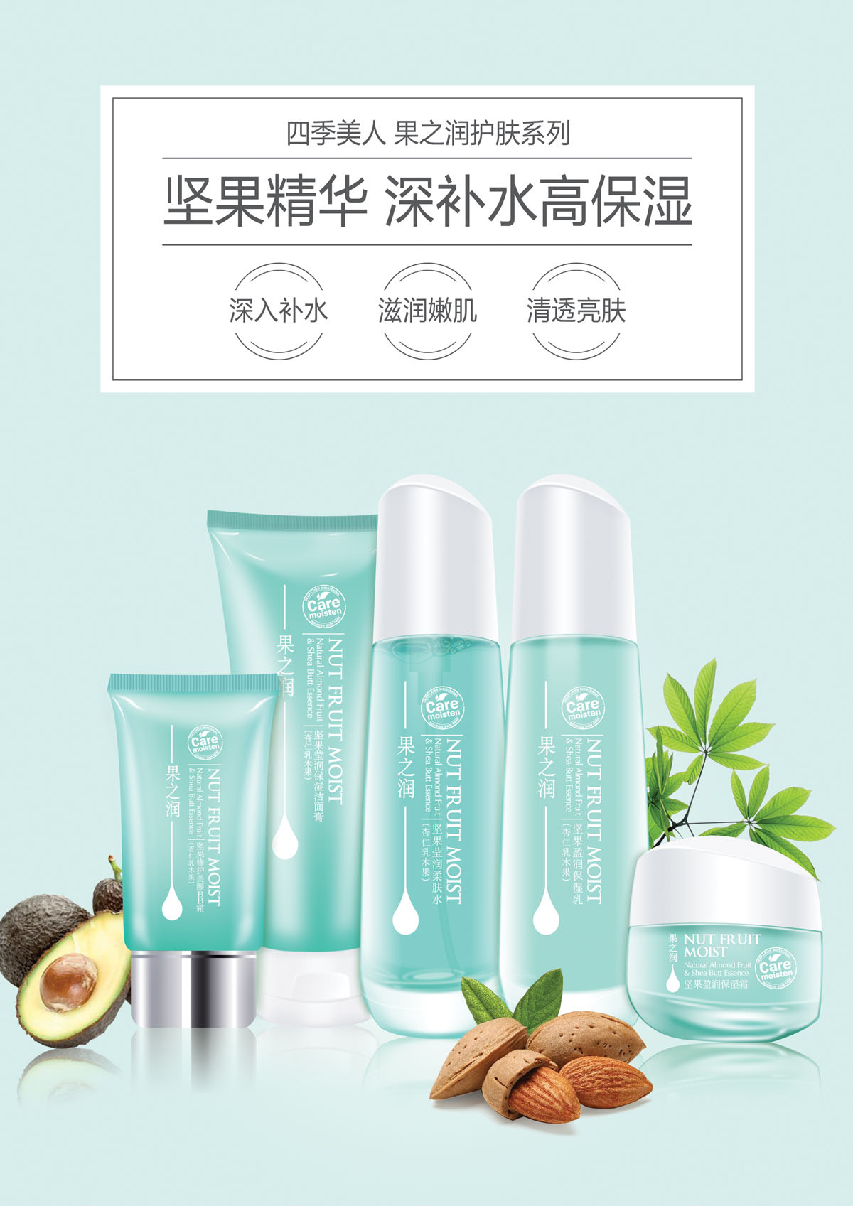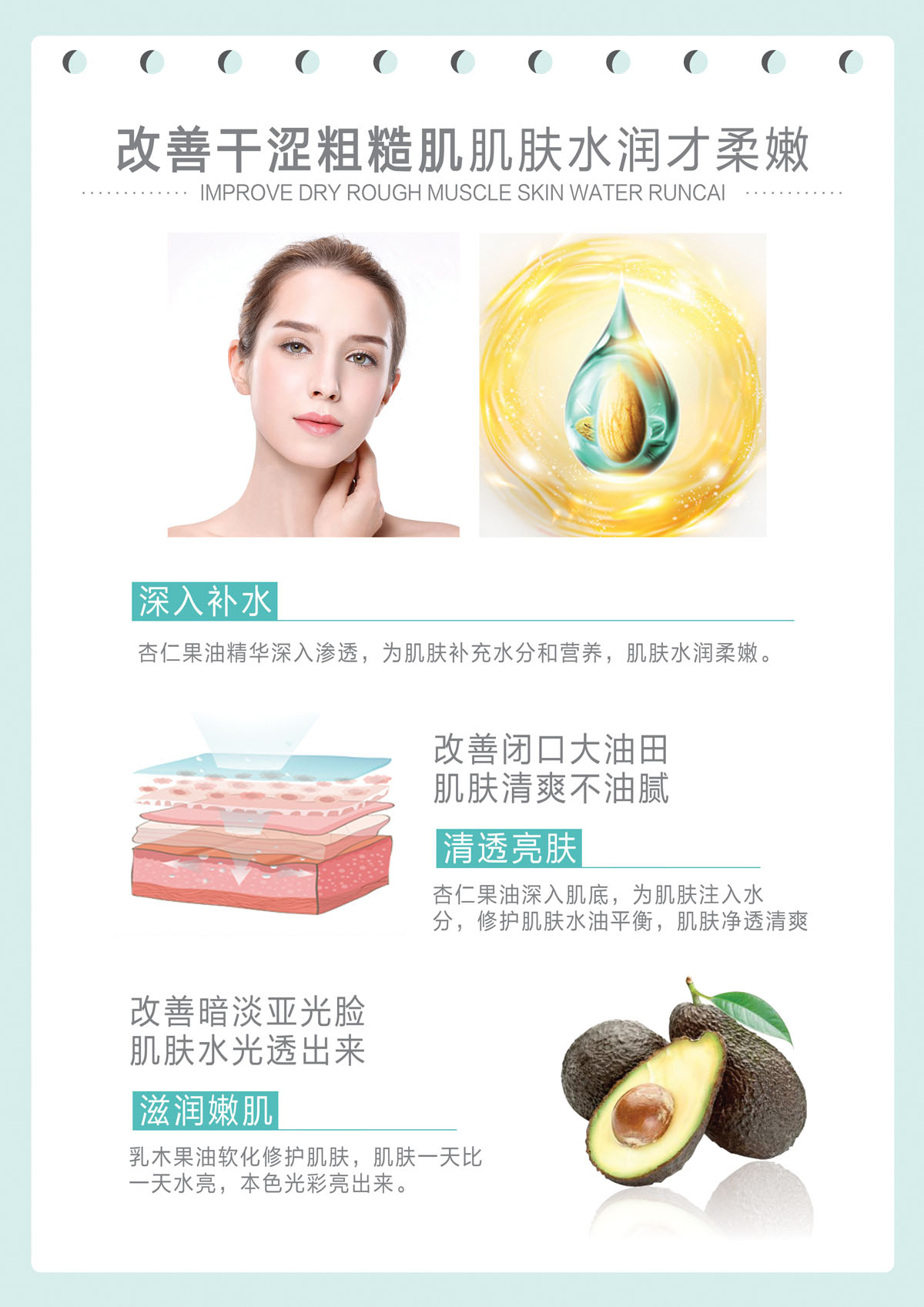 富含坚果植物萃取精华和透明质酸钠保湿成分,滴滴养护,补水保湿,凝聚修护力,令肌底吸饱精华,肌肤细嫩饱满,展现水嫩莹润。