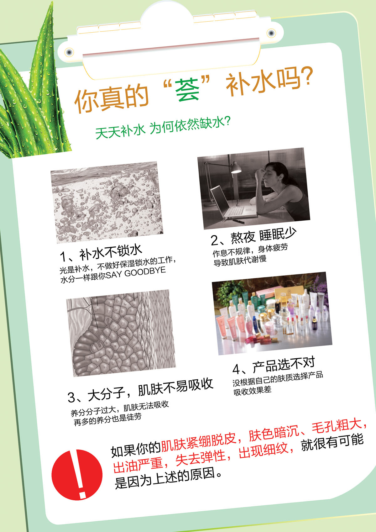 蕴含丰富的芦荟精华,具有软化、保湿滋润肌肤等作用;泡沫丰富细腻,能够清洁肌肤表面的老化角质和多余油脂,有效锁住肌肤水分,持续保湿,用后肌肤感觉清爽舒适,无干燥紧绷感。