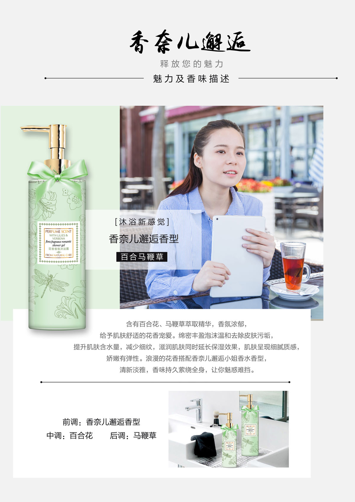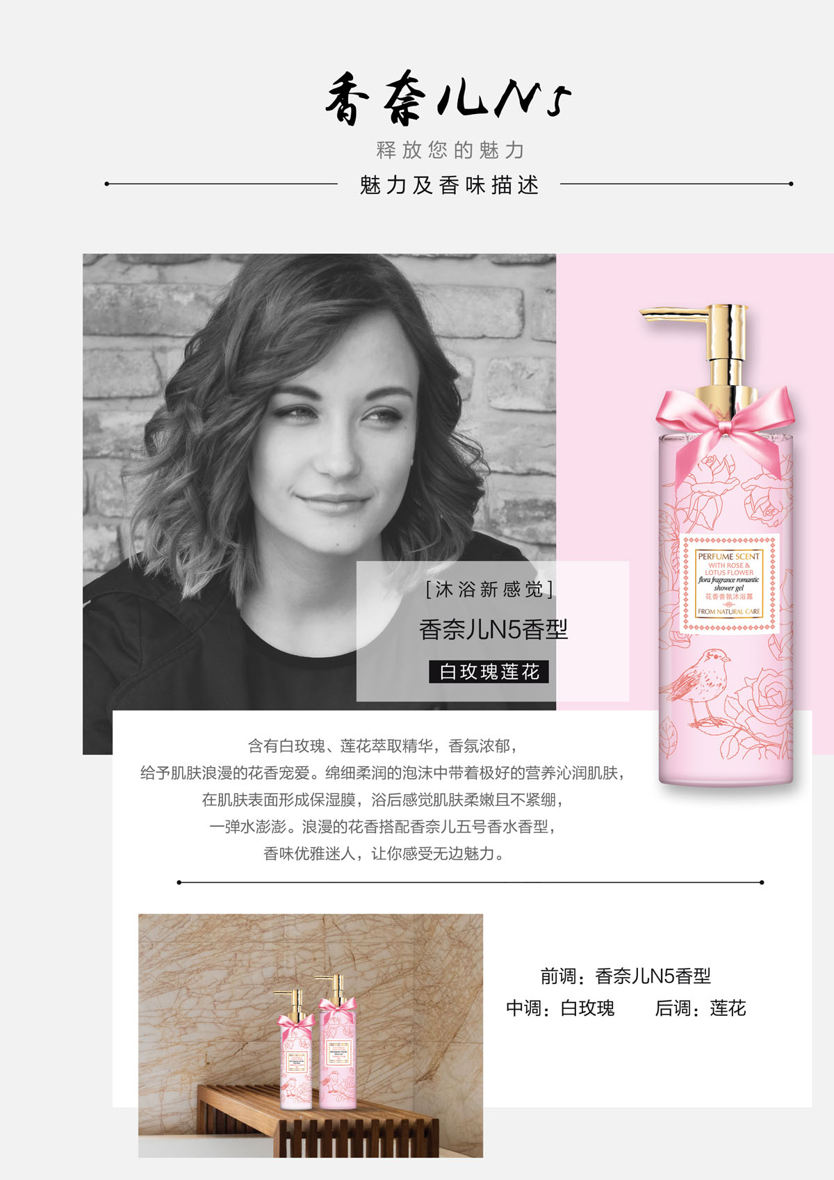 【秘密花园花香香氛系列】白玫瑰莲花 花香香氛沐浴露(香奈儿N5香型-艾比特)