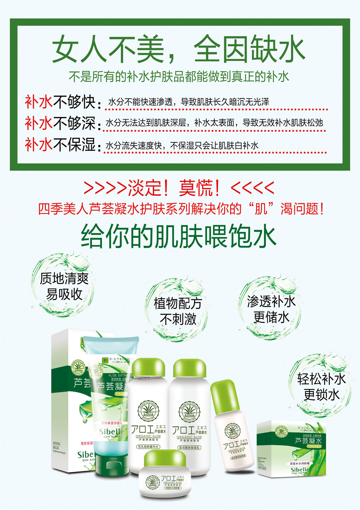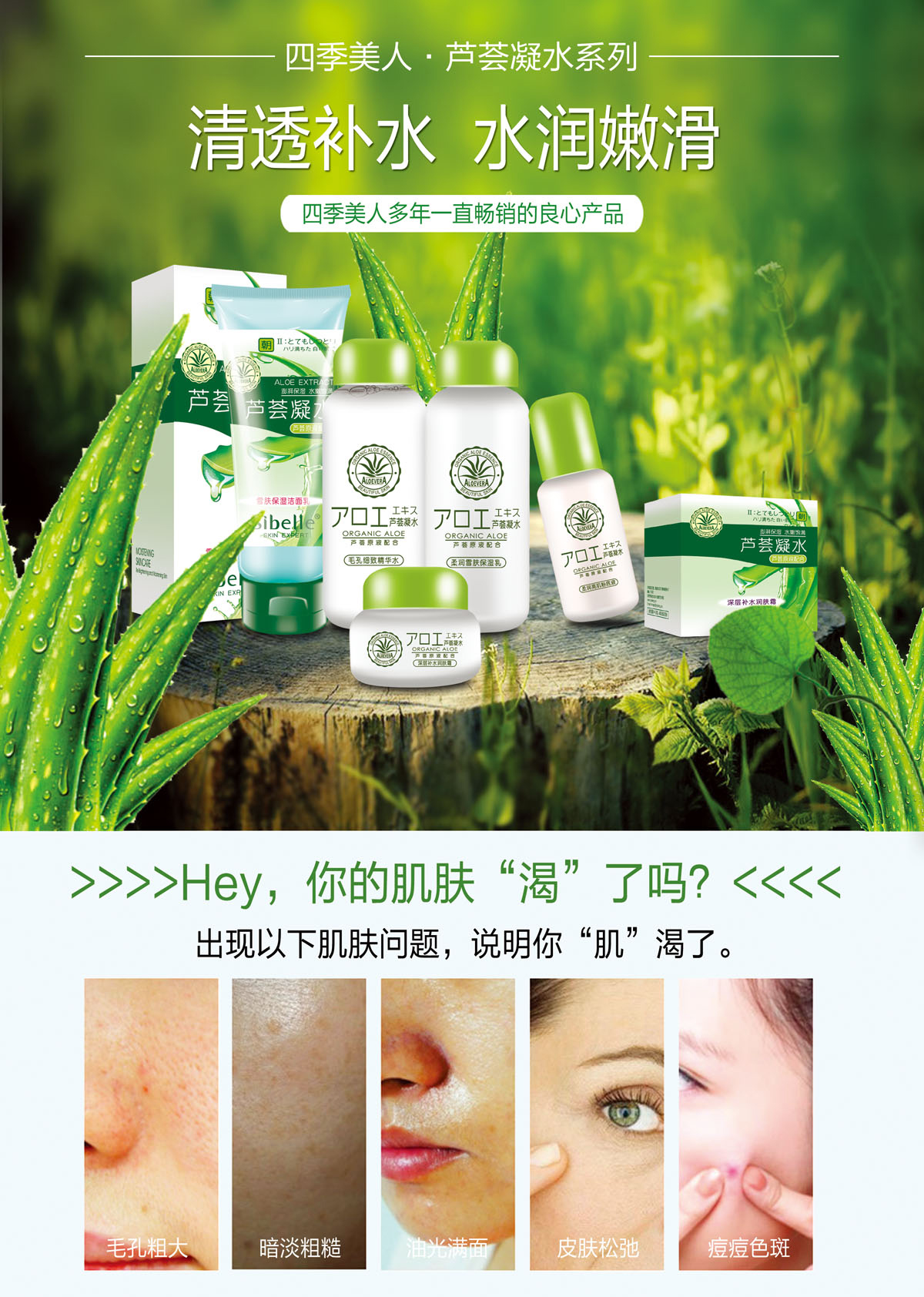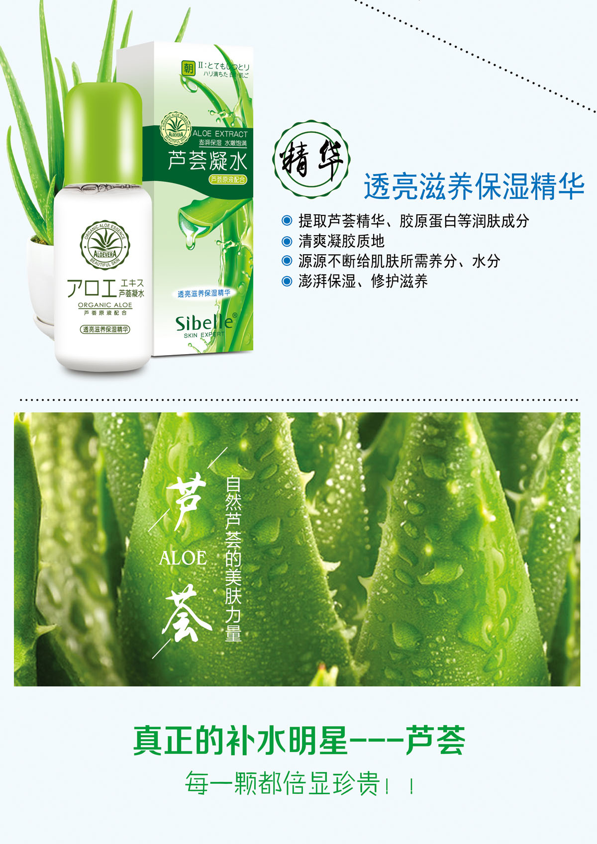 蕴含芦荟提取精华、透明质酸钠等润肤修护成分,清爽柔润质地,深入滋养,源源不断补充肌肤流失的水分和养分,改善肌肤干燥和粗糙,用后感觉清新舒爽,坚持使用,令肌肤变得更加水嫩柔滑,弹润细致。