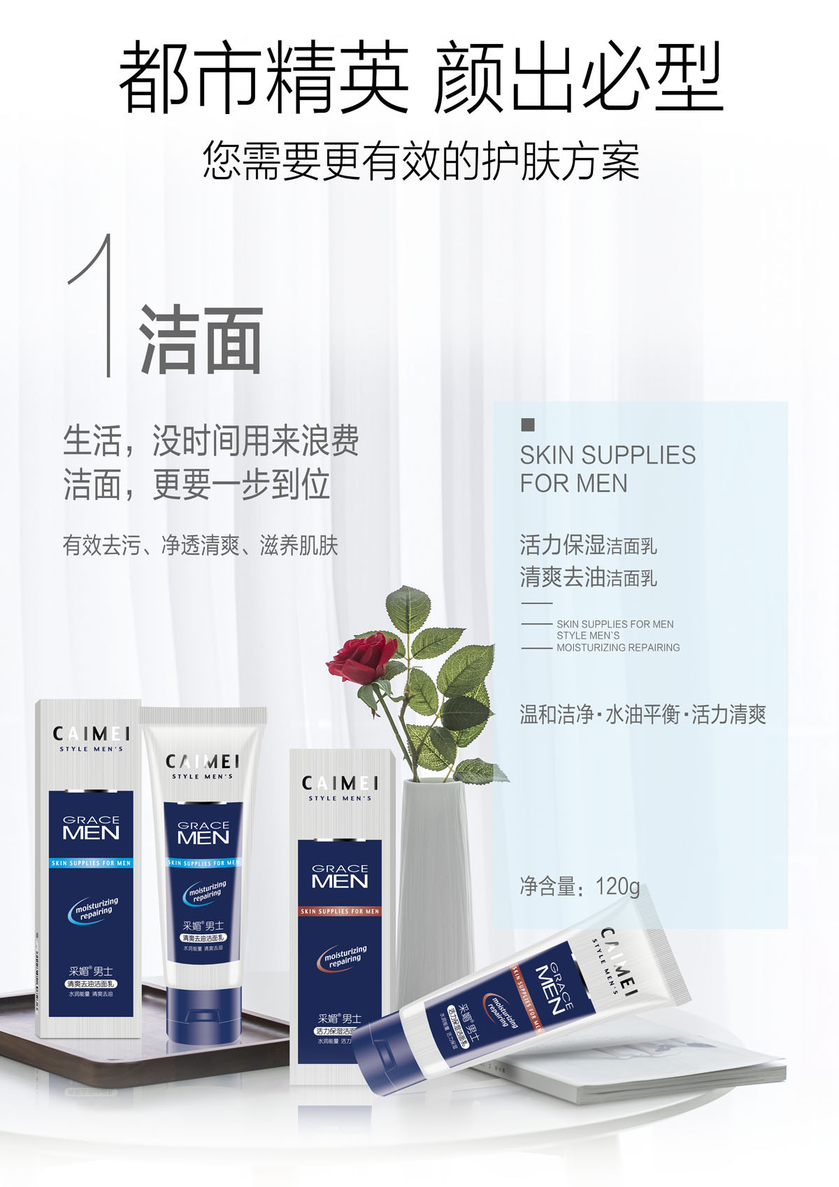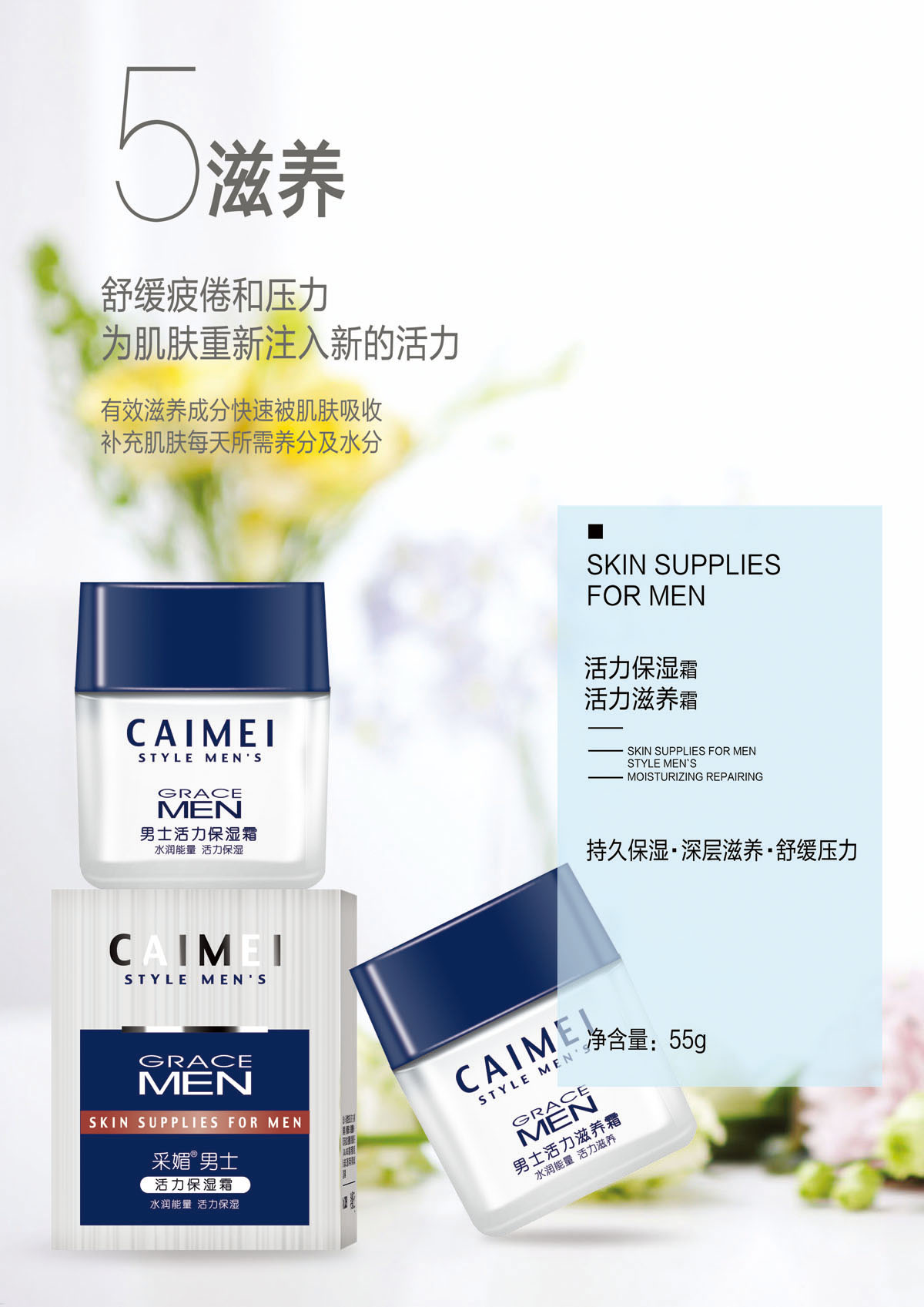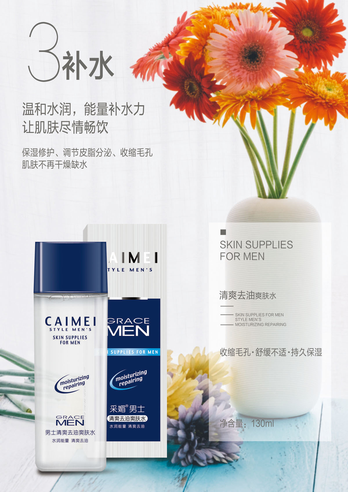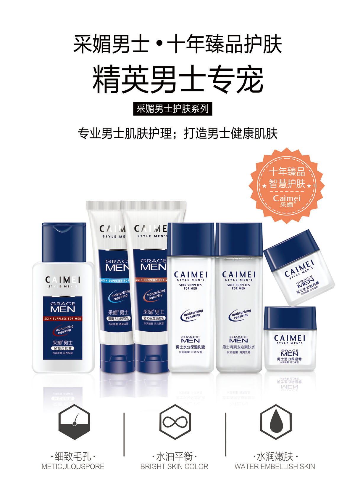 采媚男士保湿润肤露,蕴含金缕梅提取精华和芦荟保湿精华,源源补水,充分滋润并帮助缓解肌肤的干燥、粗糙及剃须后的不适感,减退细纹,令肌肤保持清爽舒适,柔润不紧绷。